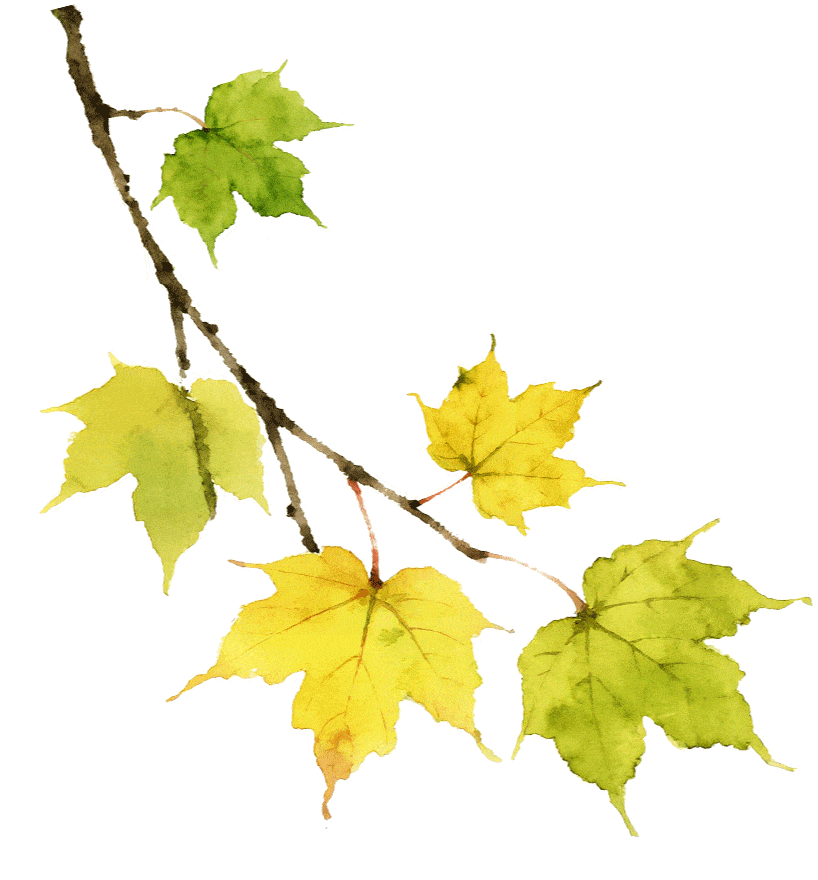 红、黄、绿三色交织于枝头