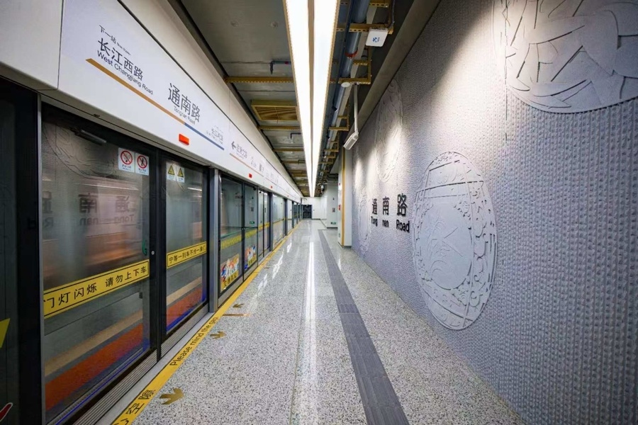 轨交18号线二期工程东起于一期工程长江南路站,西止于康文路站。本次投入初期运营的车站自东向西依次为通南路站、长江西路站、爱辉路站、呼兰路站和康文路站,共计5座地下车站。各站台内装饰均融合本土文化遗产特色,分别将淞南蛋雕、庙行丝竹、铁合金厂遗迹、远东最大棉花仓库旧址等精彩呈现,串联成一条既有工业记忆又有历史文脉的文化纽带。