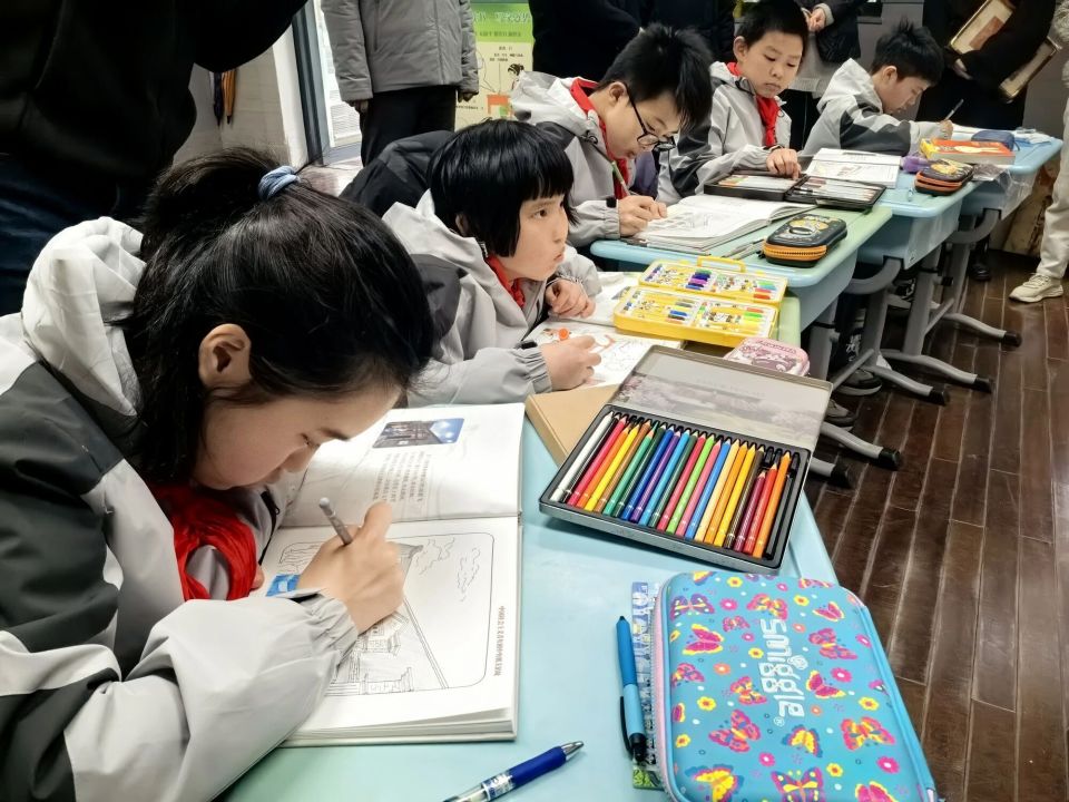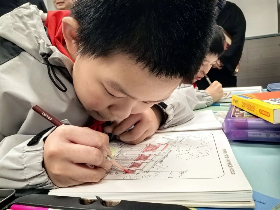 当孩子们接过绘涂本,轻轻翻开书页,指尖拂过一大会址的青砖线稿、《新青年》旧址的门牌轮廓……那一刻,一场安静的“对话”悄然开始。