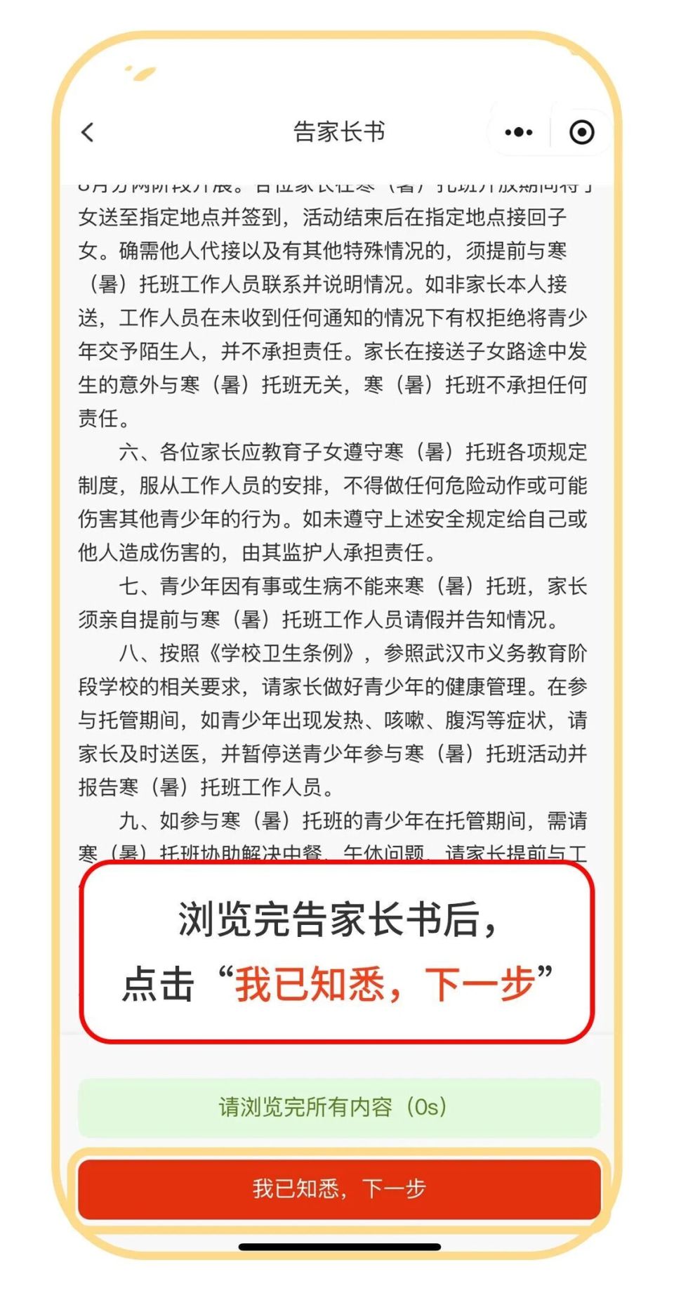 报名后应当持续参加托管活动。确需请假,请至少提前1天与托管班工作人员联系并说明情况,无故三次不参加托管的,将被取消资格,名额将被替补,并影响本人后续托管班报名。2025年武汉市青少年寒暑假“爱心托管班”开办期间曾被取消参与资格的学生,托管班有权拒绝本次报名。