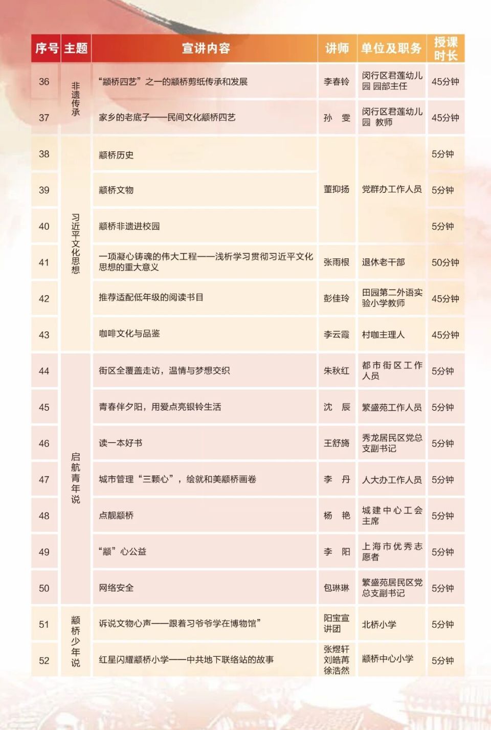 这也是颛桥镇在党的二十届四中全会精神宣讲中的一次新探索。近年来,颛桥镇打造了“颛心讲堂”品牌,累计开发超过100门课程,内容涵盖党的建设、红色文化、社区治理等多个方面。大家耳熟能详的“颛心益讲”“启航青年”“颛桥少年”等子品牌也陆续打响,老、中、青、少不同年龄群体可以通过“线上点单、线下听课”的方式,获取自己感兴趣的课程。