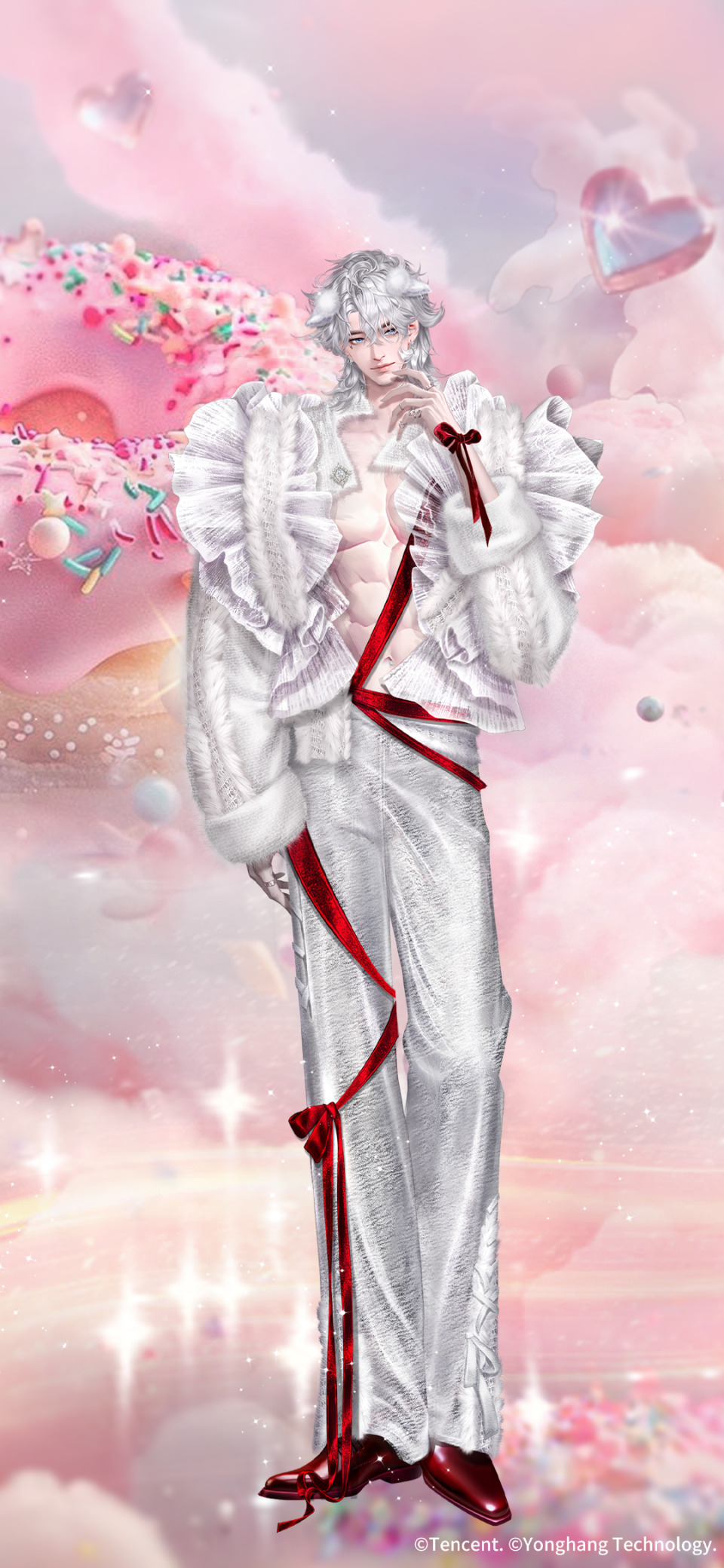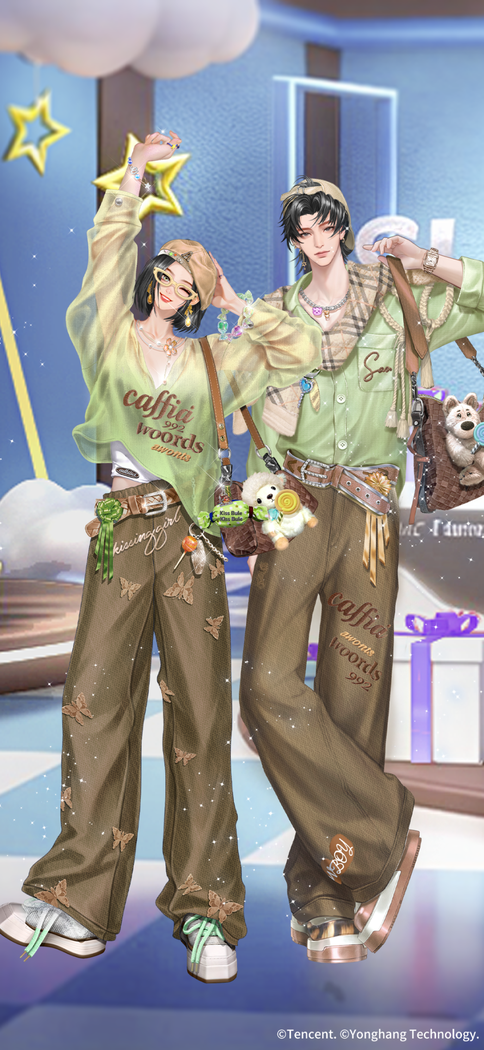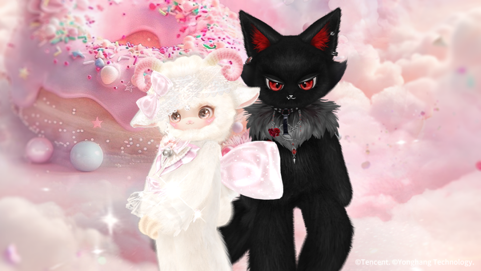 稀世套装-软糯羔羊&孤影黑狼/璀璨超凡时装-狼爱上羊/璀璨超凡定制脸-软绒利锋/超凡双飞-蝶拥纱帐/羁绊动作徽章-烬色藏媚/超凡浮云-粉絮甜圈/主题饰品/场景名片-爱的天敌/蜕变体型轻奢时装-卷卷绒冬/蜕变体型轻奢时装-卷芽绒冬将上架【藏宝之地-鎏金之庭】