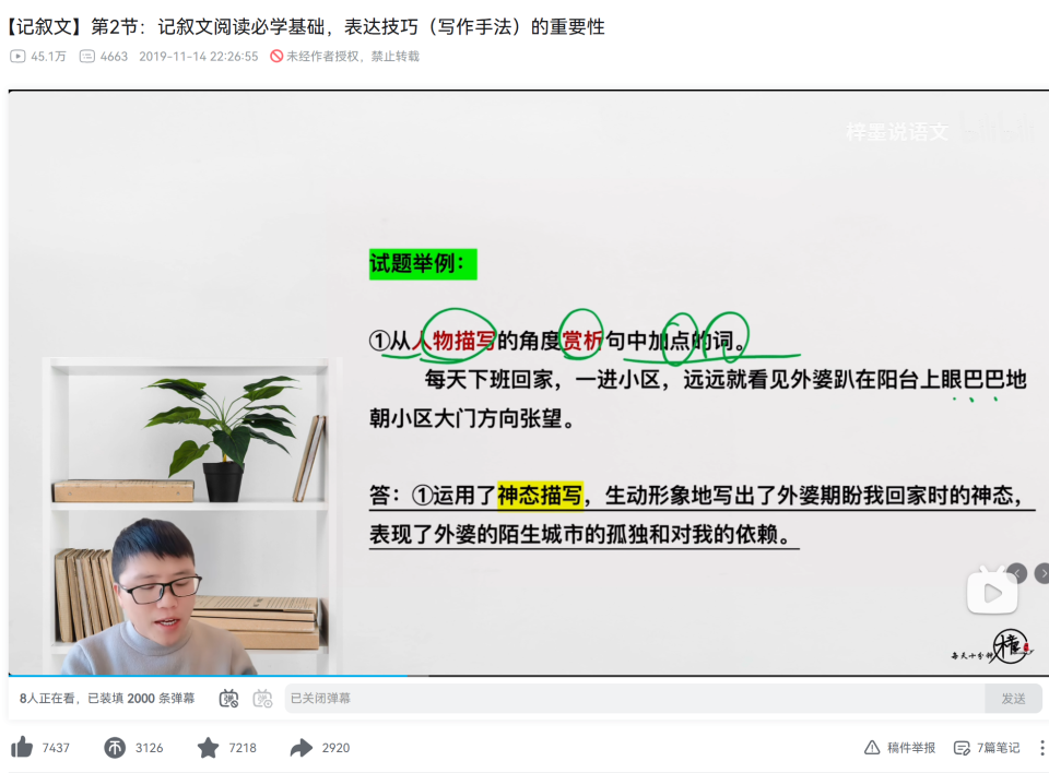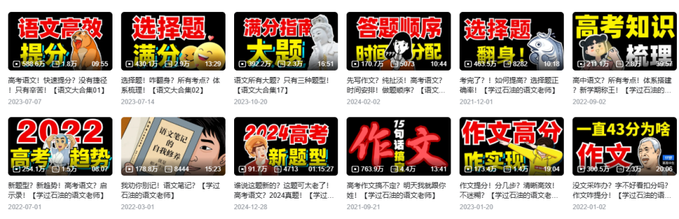 除了阅读理解,他的内容也延伸到了文言文、基础知识和写作等模块,形成了一个以阅读带动全局的系统化教学方案。