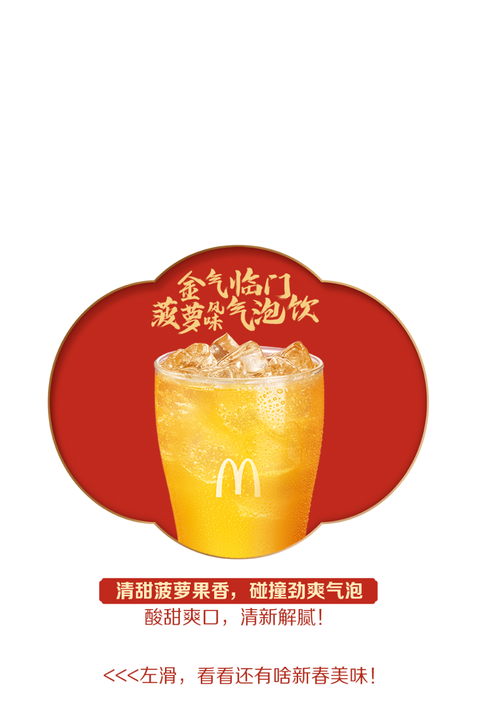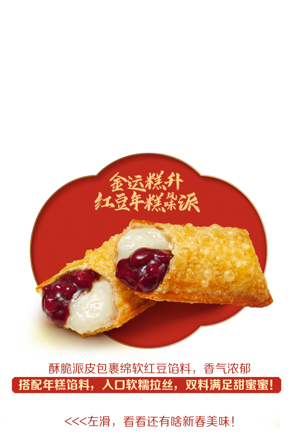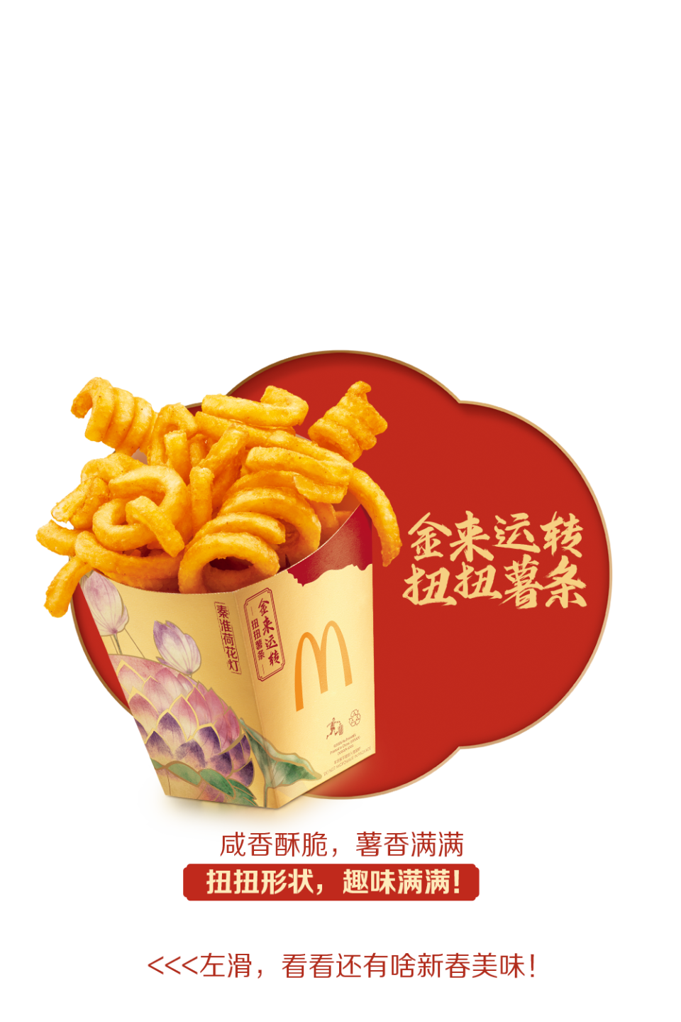 【新春限定美食】活动仅在全国部分餐厅适用(不含港澳台地区餐厅),具体以店内公示为准。温馨提示:麦旋风产品中含小粒麻薯,勿一口吞食,三岁以下儿童不宜使用,老人儿童需监护下食用。上述产品仅限早餐时段后供应,早餐时段一般至上午10:30结束,以餐厅实际情况为准。除推广产品外,其他物品不在售卖范围。部分产品为季节限定品,单店供应量可能不同,详见点购页面展示。