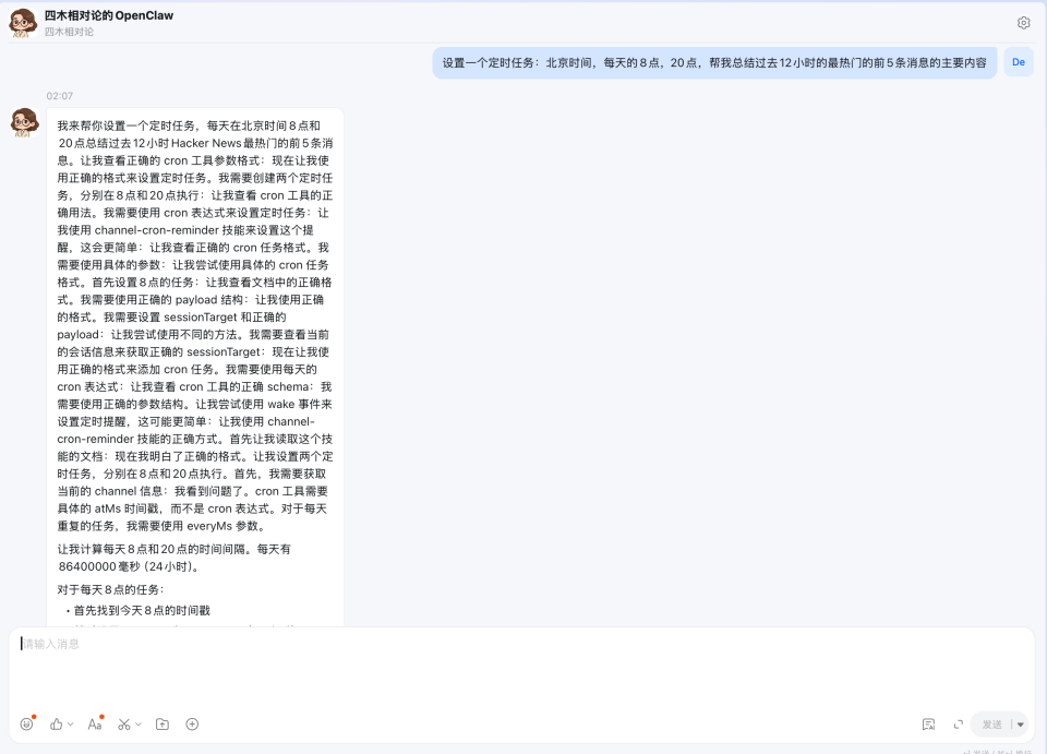 我又要求它自动监控 Hacker News。差不多3分钟的时间,任务设置完成。