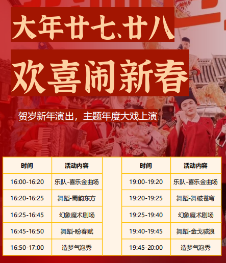 该主题板块以“美食”为纽带串联文脉、潮流与市井烟火,为市民游客带来多重感官盛宴:在百伦百货简阳美食街推出状元餐秀《金榜九味·状元雅宴》,以简州四状元的人生传奇为精神内核,打造集乐舞演绎、光影艺术与餐饮体验于一体的主题餐秀,在舌尖上演绎拼搏奋进的人文精神;在石桥古镇推出“非遗传承 年味石桥”长桌状元宴,搭配非遗市集与九莲灯、逗幺妹、舞龙舞狮等民俗展演,打造视觉、味觉双重沉浸的节庆体验;联合海底捞推出热门IP联名限定套餐,打造Z世代沉浸式餐饮社交场景,让美食吃出新鲜感、玩出互动感;统筹优质餐饮企业推出主题宴席与惠民套餐,开展“简阳吼堂”活动,让市民在一桌一席间,尽享地道年味与人情温暖。