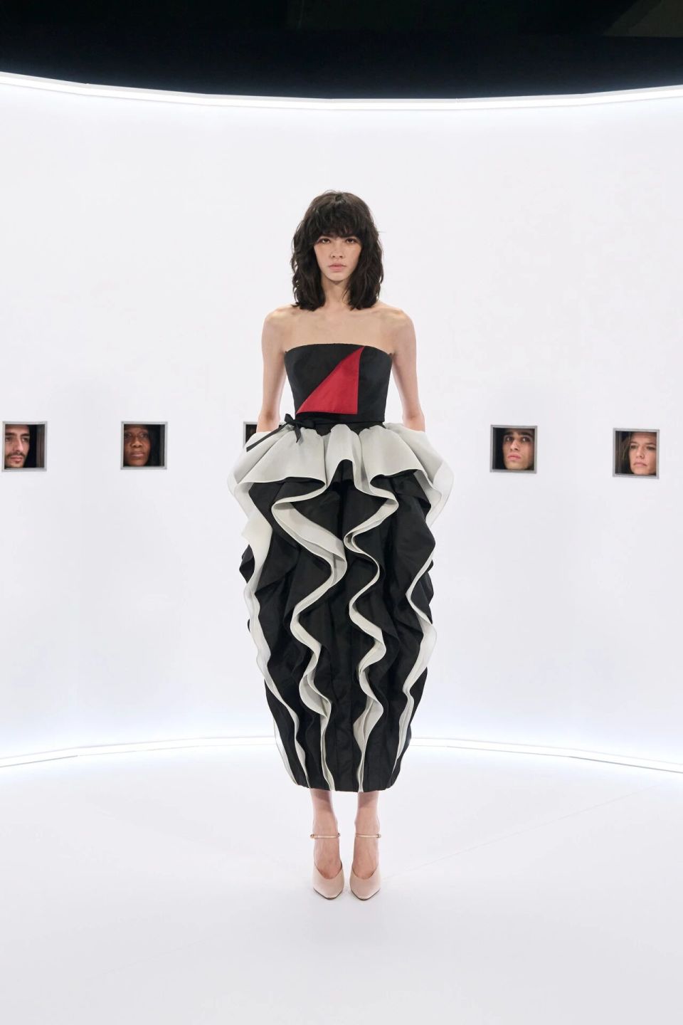 比起Matthieu Blazy想将CHANEL高级定制时装带入日常,成为消费者衣橱里充满新鲜感的必备品。Jonathan Anderson的首个Dior高级订制系列时装则在努力变成一件当代艺术品,那些从陶艺家Magdalene Odundo作品中借鉴的轮廓曲线说明了一切。