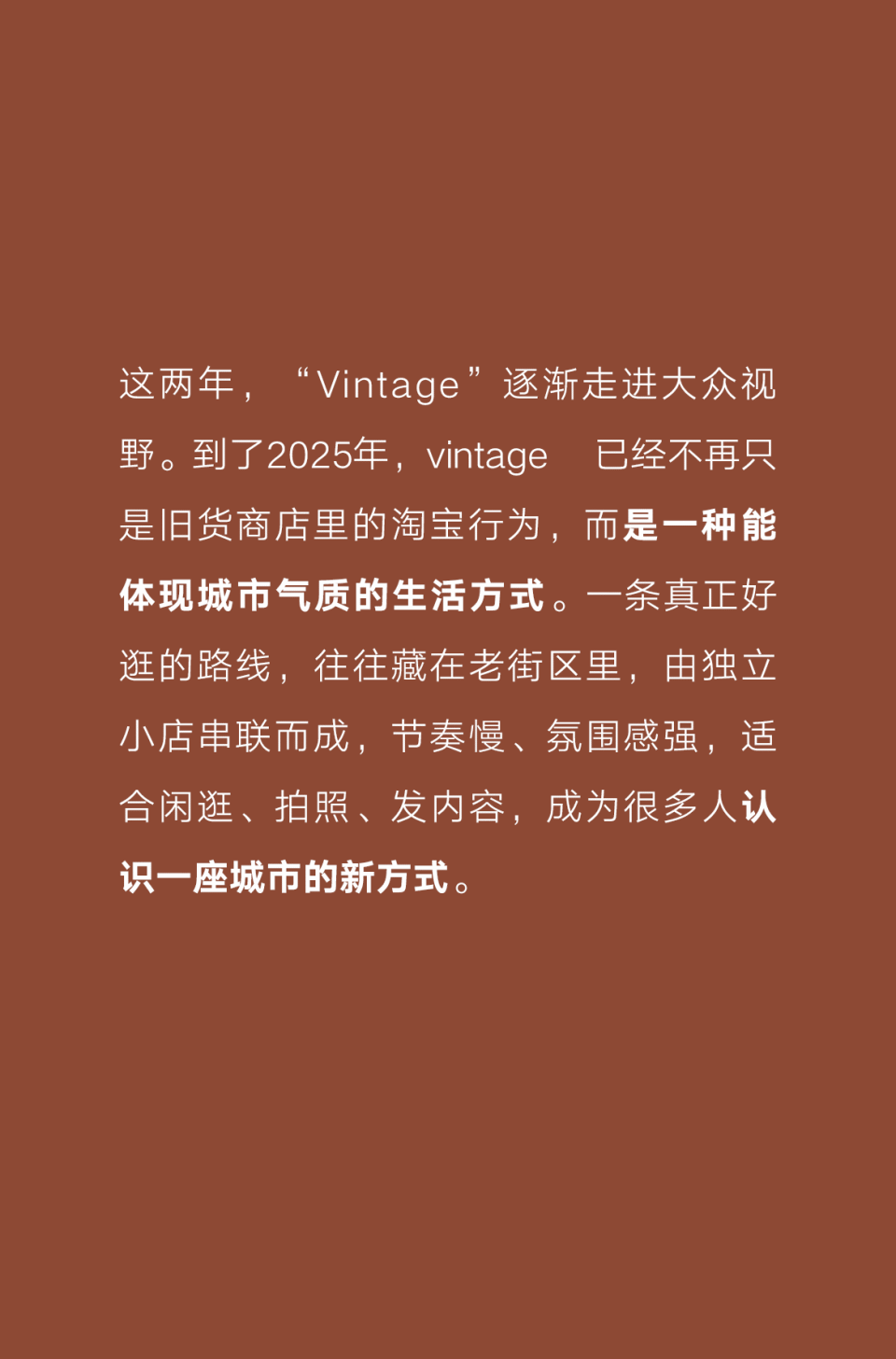 一条真正好逛的Vintage路线,往往藏匿于城市的老街区、文创园或寂静的街角,由数家风格各异的独立小店串联而成。