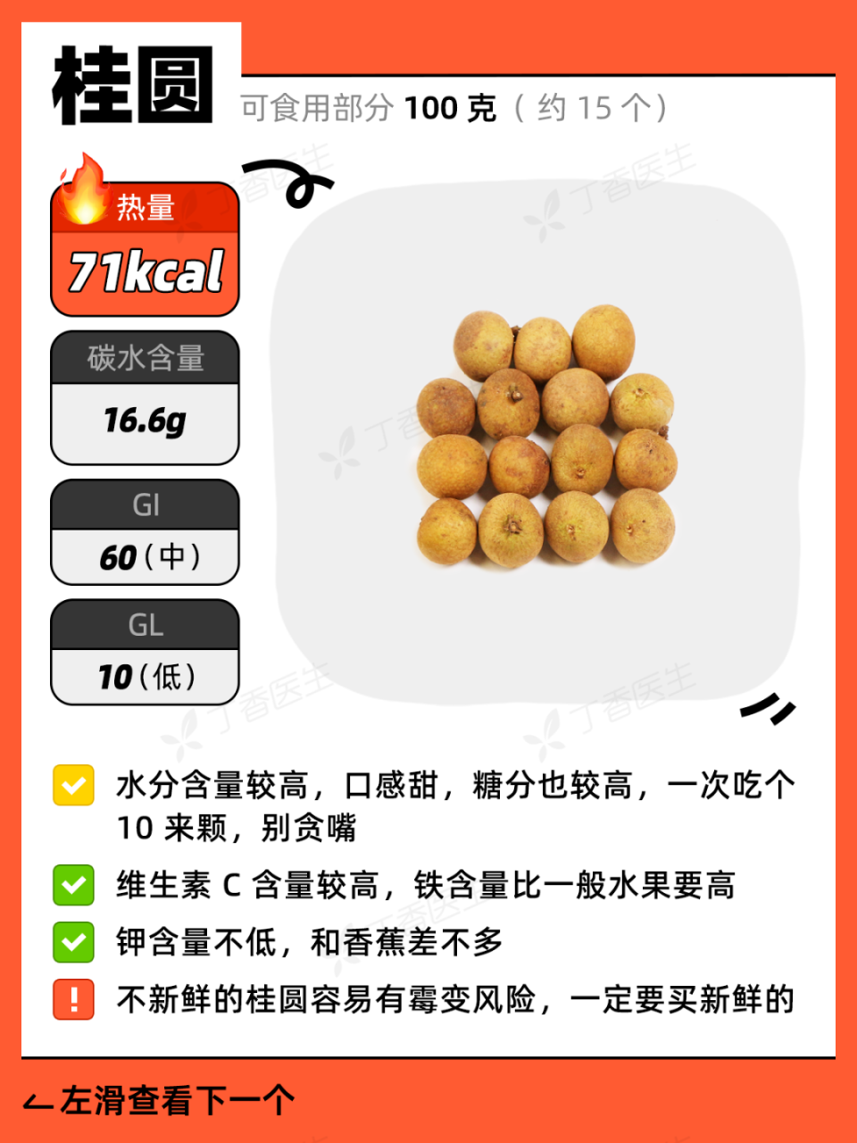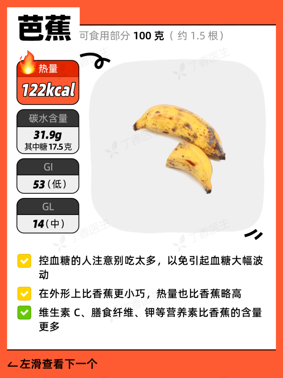 🌟但在实际应用中,更要关注 GL(血糖负荷),它考虑的是同样吃 100 克某一种食物,造成的血糖波动有多大,把食用量考虑进来了,更能客观的反映食物对血糖的影响,GL 值越大,代表对血糖的影响越大。(低 GL ≤10,中 GL 11~19,高 GL≥20)