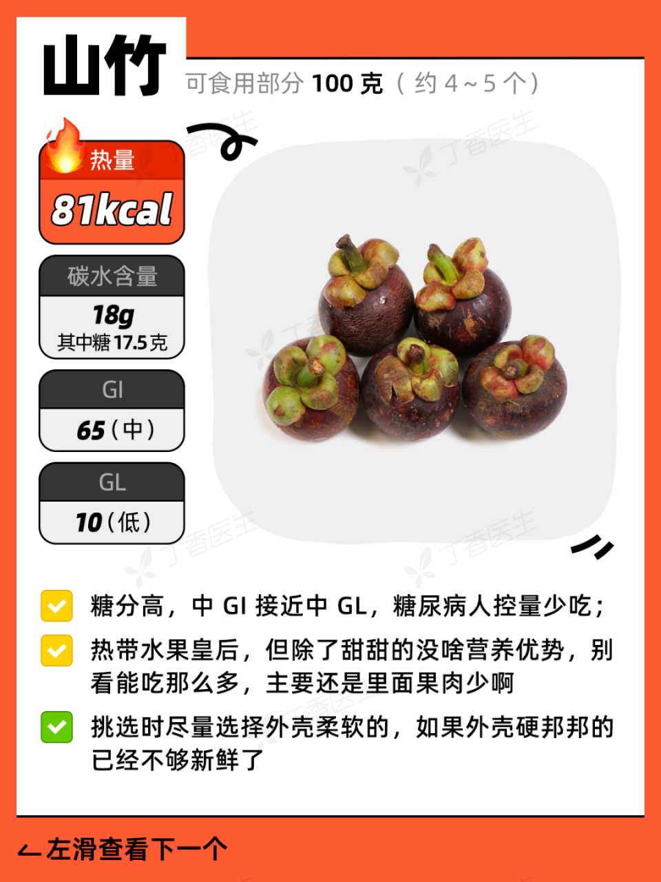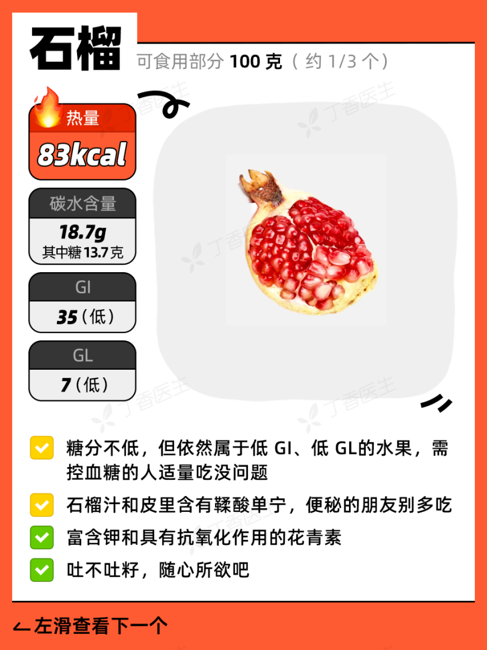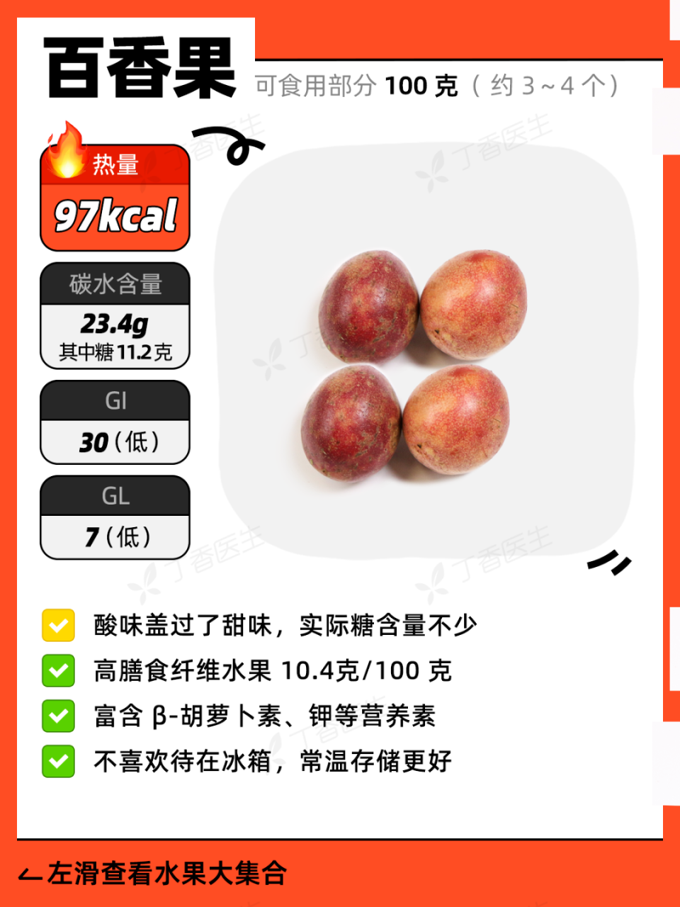👉对于有血糖控制需求的朋友,每次不要超过 100 克的摄入量,一天总量 200 克左右是合适的。选择水果种类的时候,除了考虑除了要考虑糖含量,重点还要考虑 GI 和 GL。