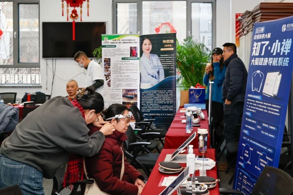 游园途中,“车水马龙·温馨驿站”为老同志们提供了休憩交流的空间,老同志们围坐在一起话家常、忆往昔、谈发展,感受老友相聚的温暖。“天马行空·健康体验”环节则精准贴合老同志的健康需求,现场设置脑健康筛查、AI智能健康检测、中西医多学科健康监测等特色医疗养护项目,让老同志们收获满满的健康关怀。