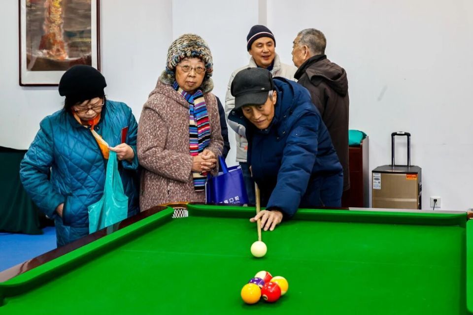 互动健身环节同样精彩纷呈,趣味乒乓球、趣味台球活动让老同志们在轻松的竞技中体验运动的快乐。