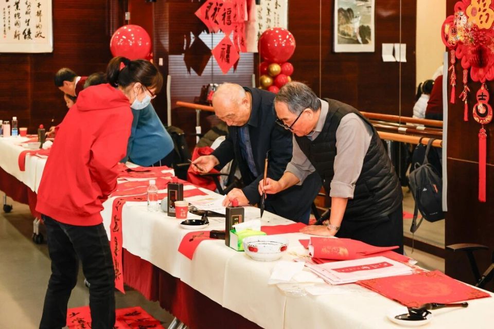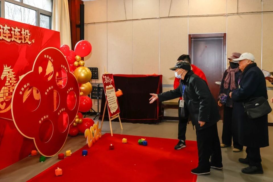 趣味游戏环节备受青睐,福气连连投、新年滚滚乐、马年上上签、猜灯谜等游戏各具特色,老同志们踊跃参与、活力迸发,根据游戏成绩收获了心仪的奖品;在书法互动区里,参与者挥毫泼墨,书写春联福字,现场喝彩声、欢笑声此起彼伏。