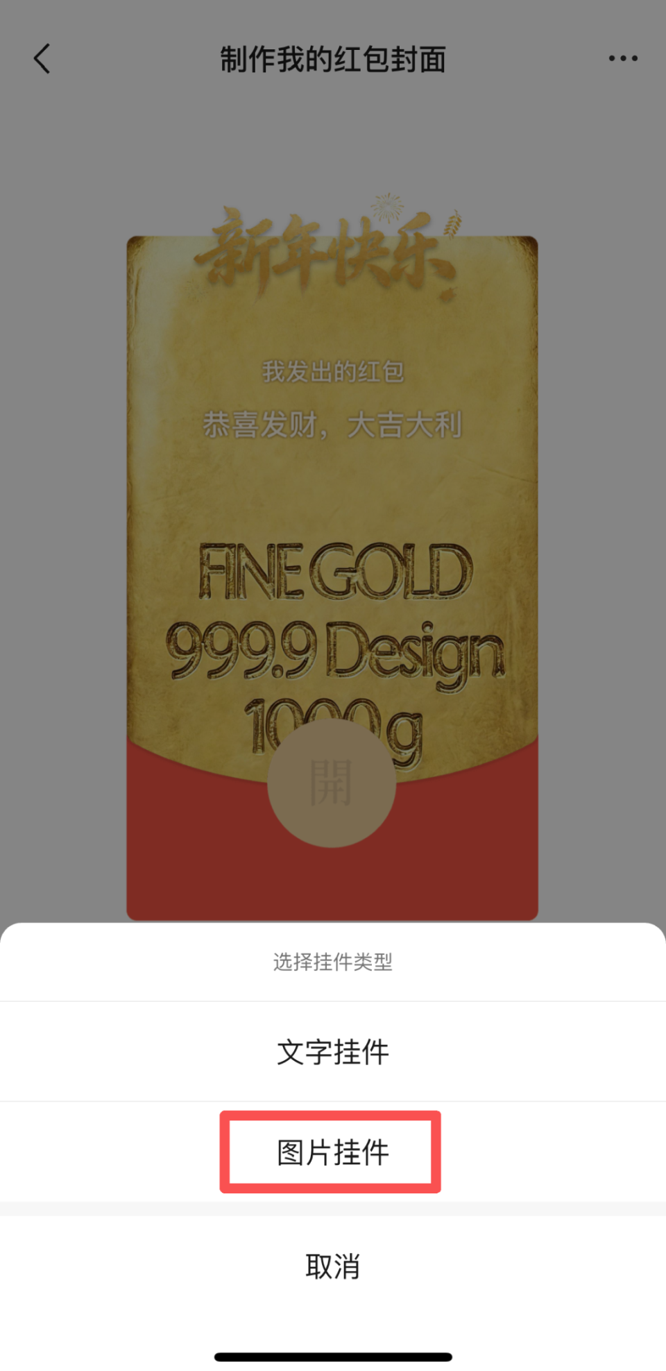 今年春节期间,在微信发表贴图内容,就可以制作“挂件红包封面”。祝福语和图片,想“挂”啥,你说了算。