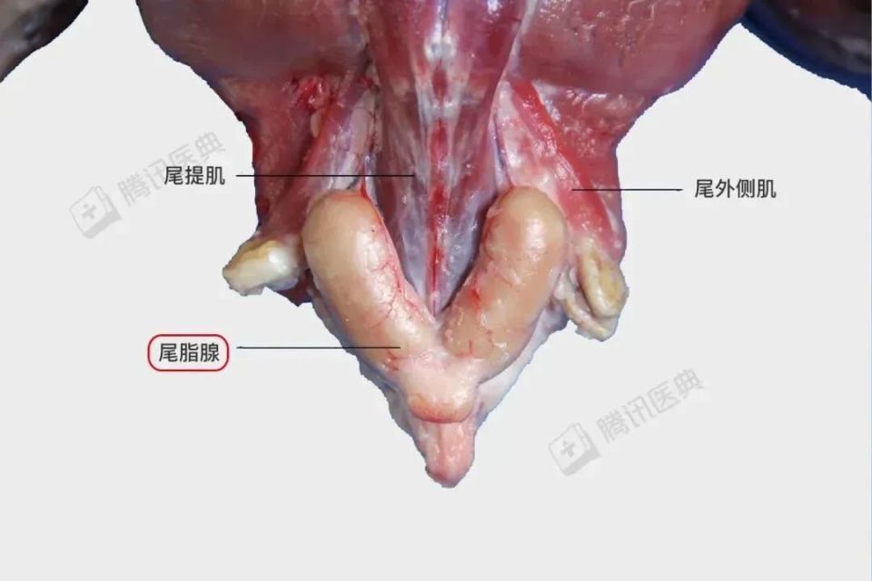 尾脂腺是鸟类专门分泌油脂的部位[1],鸡、鸭经常会啄取这里的油脂来保护羽毛,所以尾脂腺容易形成脓液,可能会污染到周围肉质。