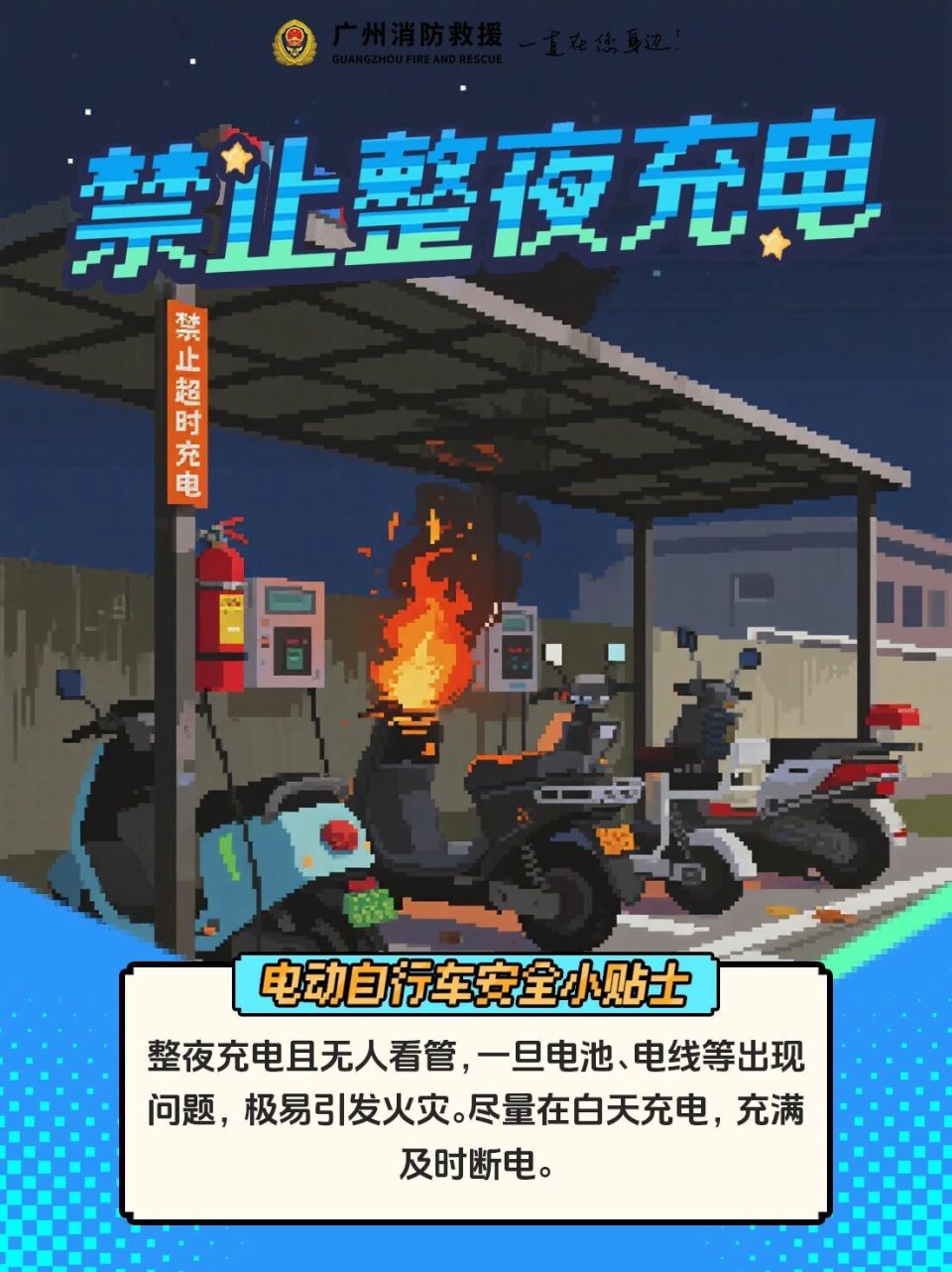自2024年12月30日起,《广州市电动自行车管理规定》正式施行。其中对电动自行车的停放、充电等消防安全作出明确约束: