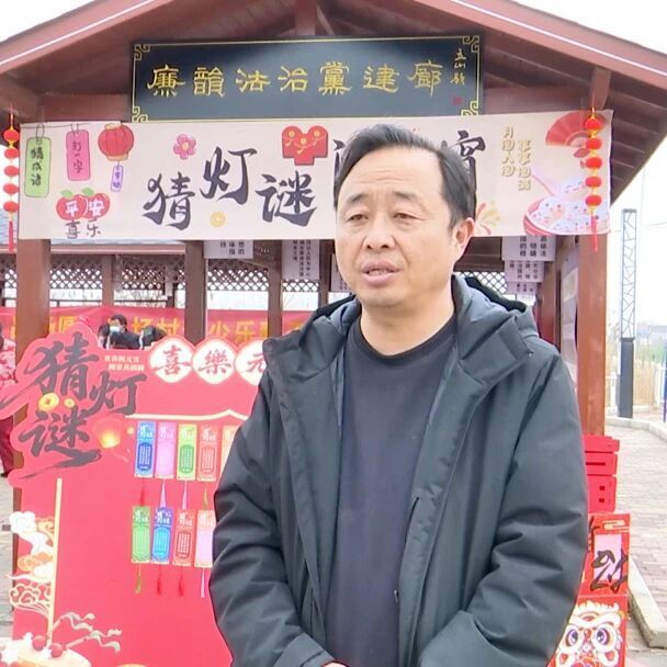 在杨楼镇冯场村新时代文明实践站,廉韵法治党建廊上挂满了花灯,花灯下面挂着灯谜条。灯谜内容包罗万象,既有传统文化、历史典故,也有贴近生活的常识问答。旁边一口大锅里正煮着元宵,几分钟后,热气腾腾的元宵被分发到周围群众手中,这一幕幕正被和美乡村直播间实时传递。