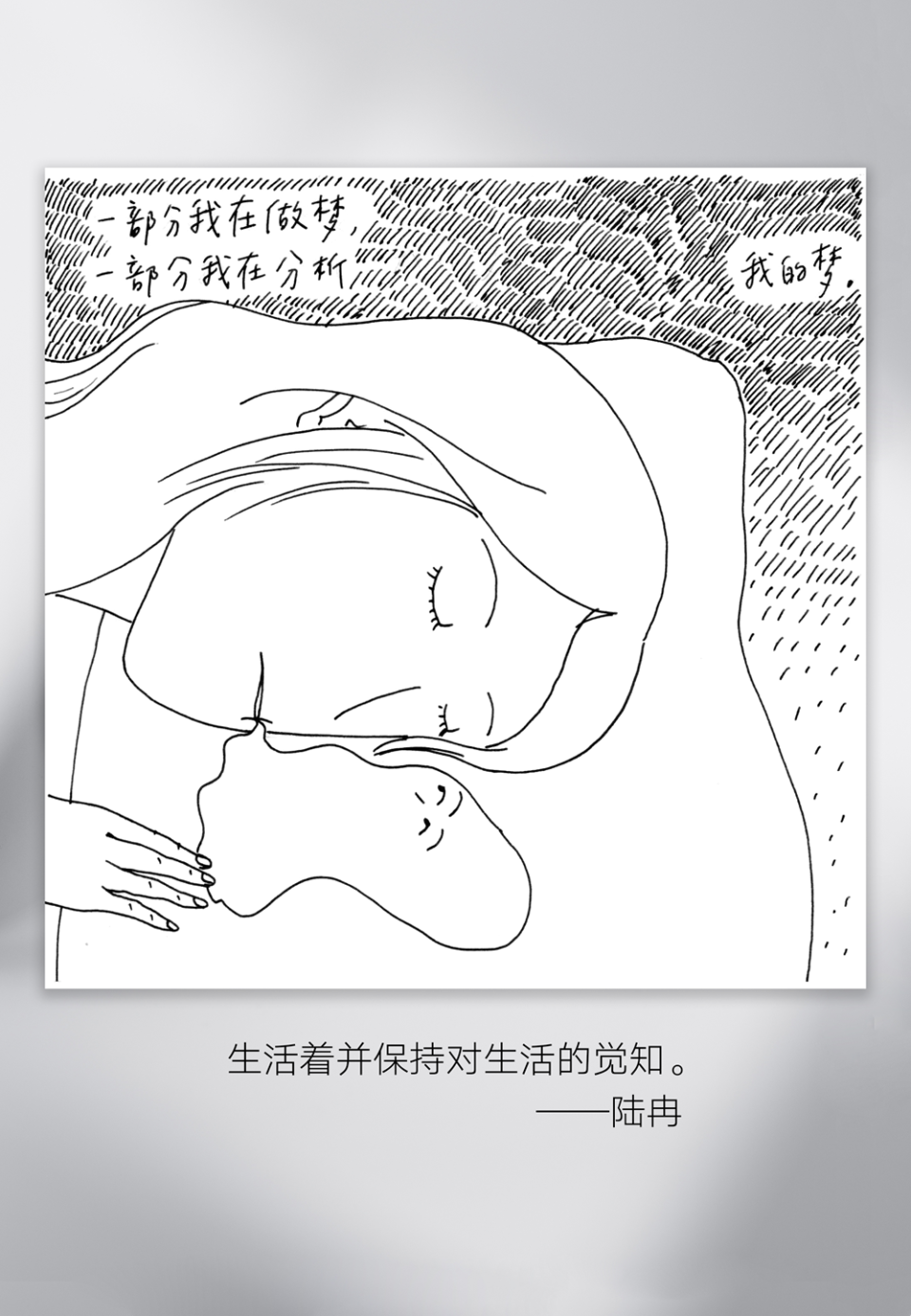 早期画画找不到自我时,是焦虑的。随着信心增加,画画的心态也越来越纯粹:画自己想画的就对了。我的灵感就在跟生活的高强度互动中产生,我无时无刻不在思考着,做饭、洗碗、跑步、乘地铁、见朋友……总有另一个我在观察着素材,甚至睡觉时,梦还在思考着。这是一种颇为紧张的状态,但并不焦虑。