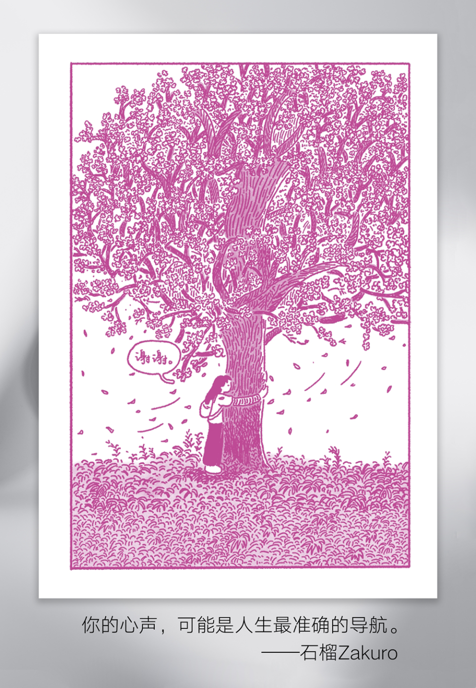 2023年,石榴的父亲因病离世,她人生第一次直面死亡。之后她搬到了广州重新开始独自生活,并在日复一日的例行散步后,将自己的观察和心境持续地画了下来。这部慢节奏的漫画作品就是《心的散步》。这是一部疗愈之作,几乎没有故事性,但在季节变化中,却能感受到生命的温暖、时间的流逝。石榴画下了偶遇的小猫、蝴蝶、一片叶子的纹理、雨中的树木和对父亲的思念。在纸张柔软的阅读翻页间,抚平了心间那些细小的缺口。