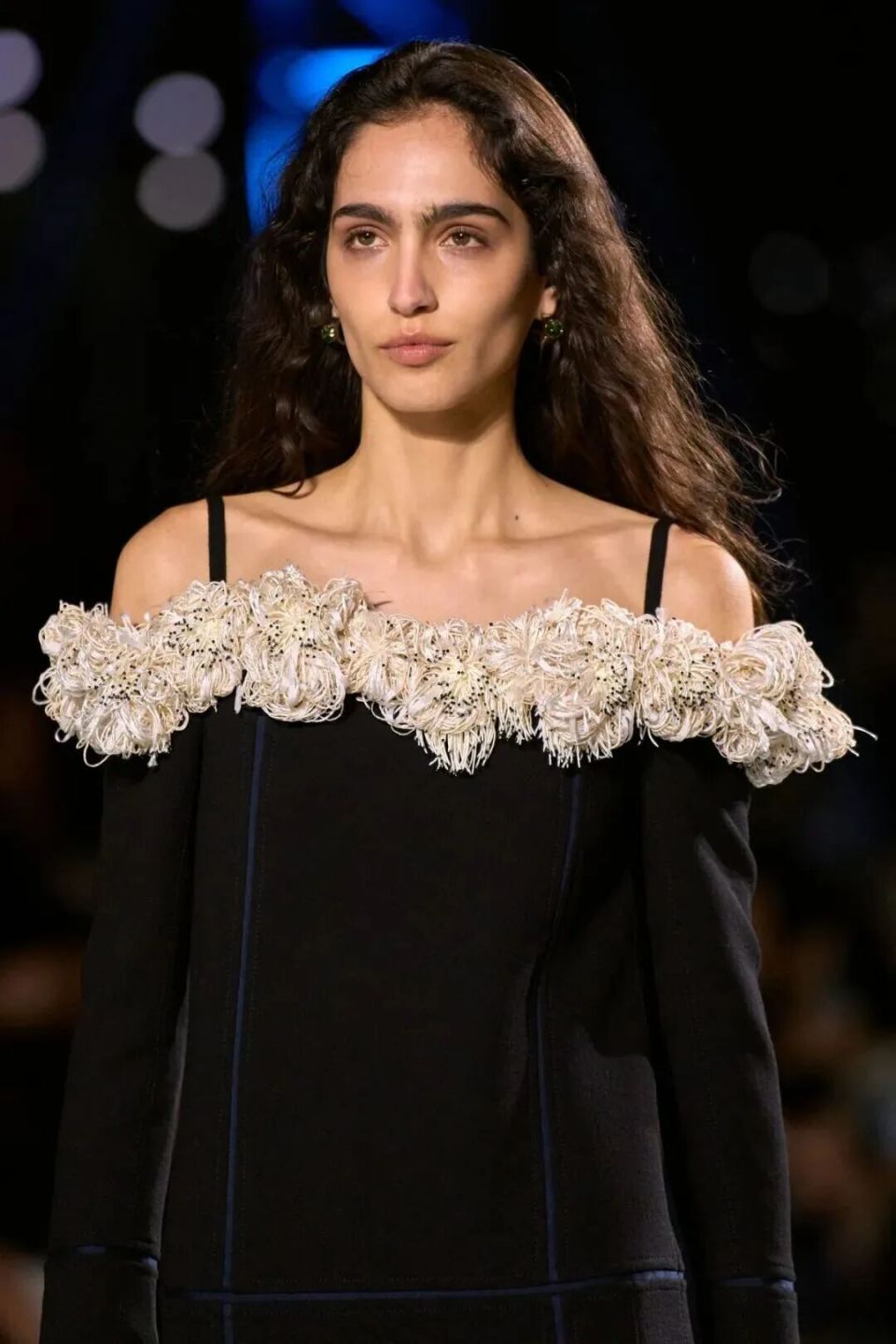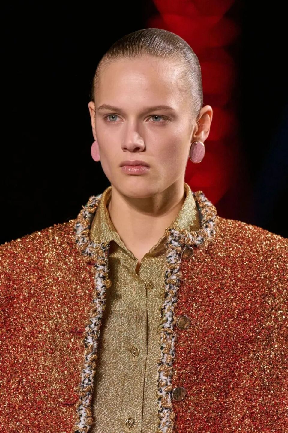 作品的廓形逐步递进,层次丰富,轻盈流畅。风格涵盖了风格从上世纪二十年代到三十年代,五十年代到六十年代,再到现代的多种元素,完美地呈现了香奈儿一贯的跨时代魅力。Matthieu Blazy通过对嘉柏丽尔女士钟爱的20年代flapper风格的极致演绎,将腰线移至胯部以下,腰带成为自由行动的标志,既经典又现代,巧妙地将夸张手法转化为时尚宣言。