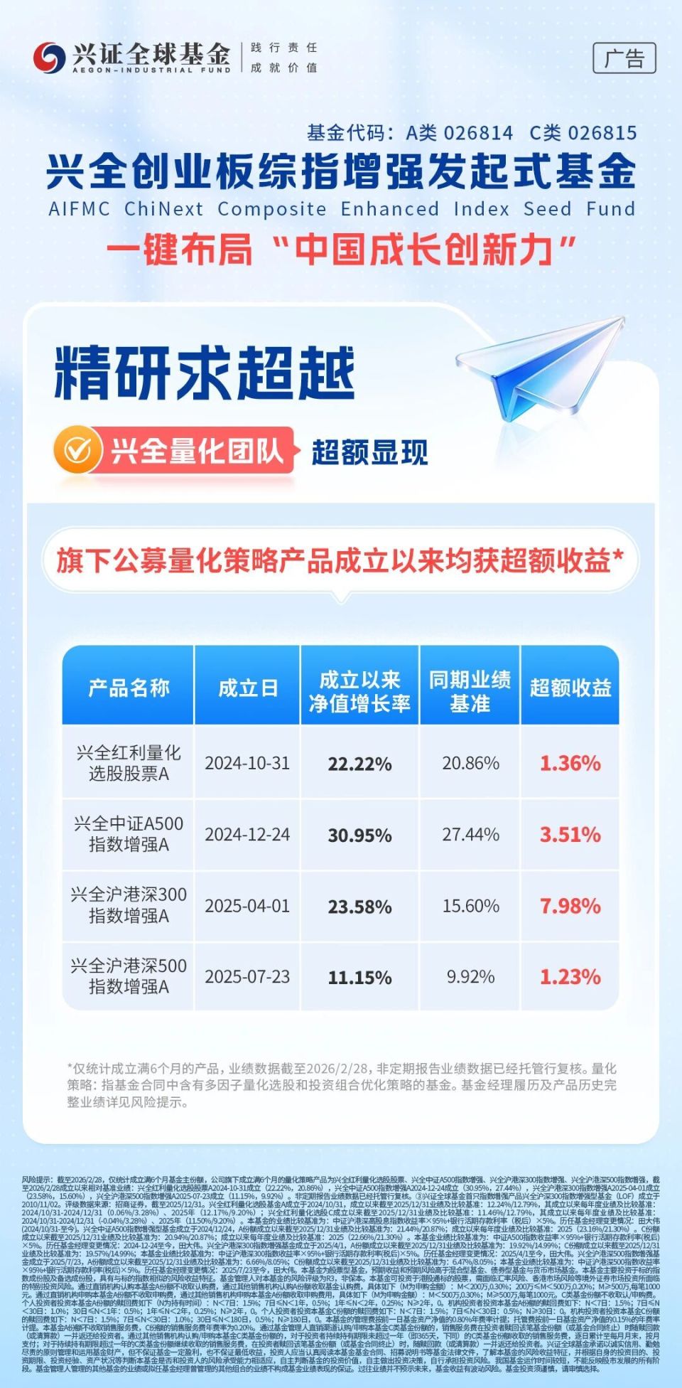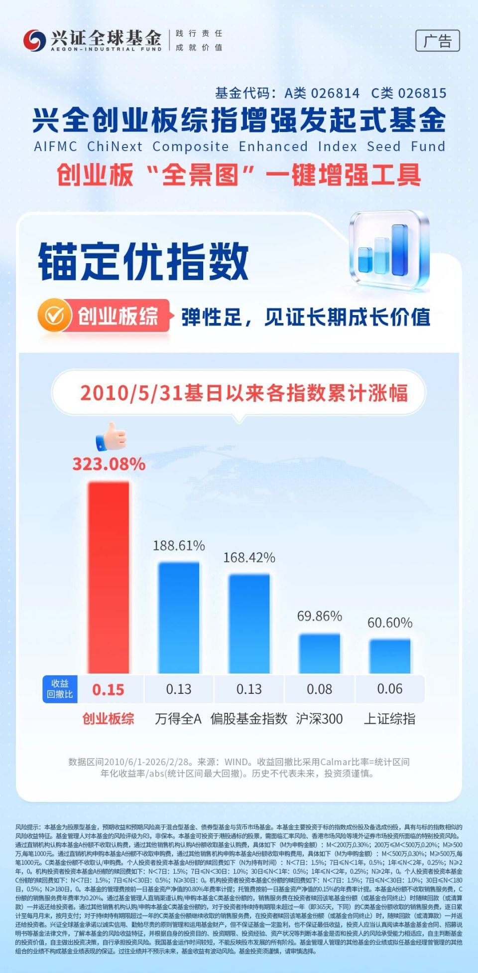 想要布局创业板综?指数增强型基金或为一种选择。兴全创业板综指增强发起式基金正在发行中,通过锚定创业板综合指数并辅以增强策略,力争实现超越基准的超额收益。为什么指数增强或为宽基投资优解法?