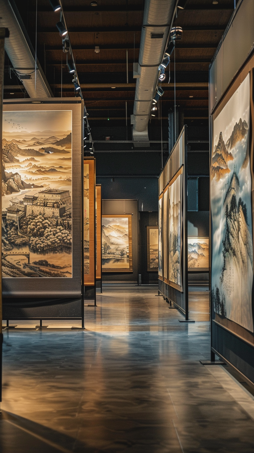 设计灵感源自敦煌壁画里飞天的飘带,流动的金色线条缠绕着长廊,22座飞天神女雕像静静伫立,各式古乐乐器错落摆放,光影在墙面流转,直接把二维壁画的韵律感拉成三维空间。走在这里,仿佛下一秒就要跟着飞天神女踏入敦煌的世界。