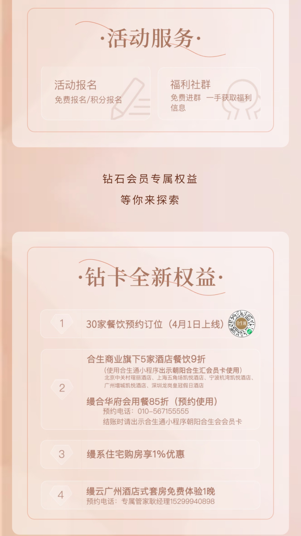 合生汇的会员朋友们,权益已经全新升级!等级、积分完善更新,福利及免费体验内容也已焕新上线。下次去合生汇逛街,记得使用VIP专属权益哦!