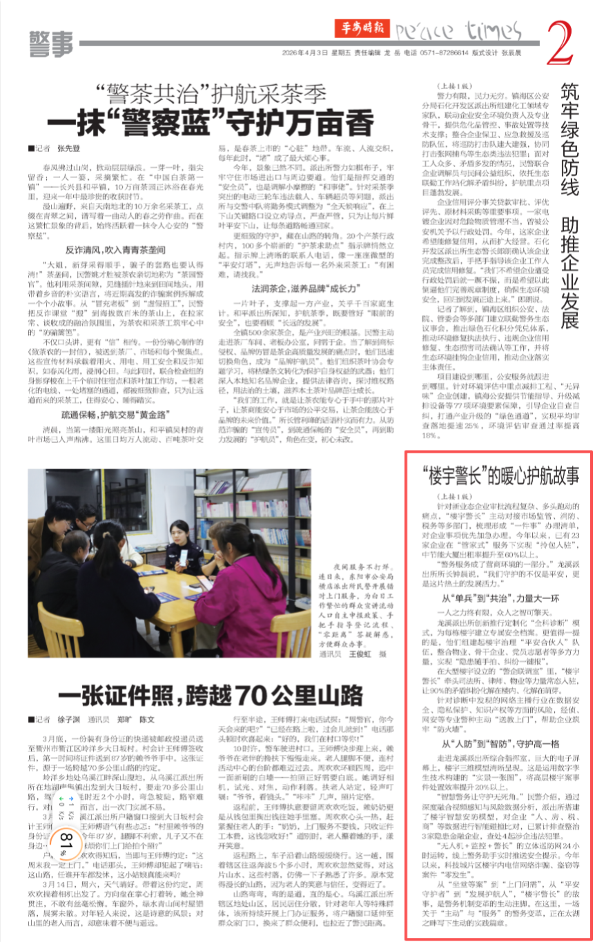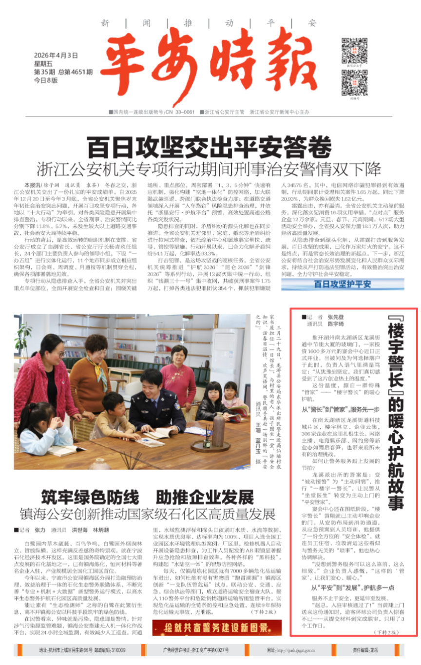 “没想到警务服务可以这么靠前、这么细致。”企业负责人感慨,“这样的‘管家’,让我们安心、暖心。”