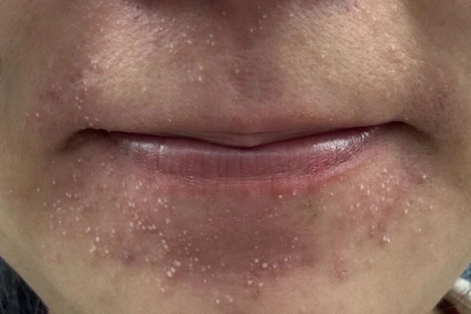 通常以口周、鼻周或眶周区域的红色小丘疹为主要表现,以年轻女士为主,发作原因通常和局部反复使用激素等相关。