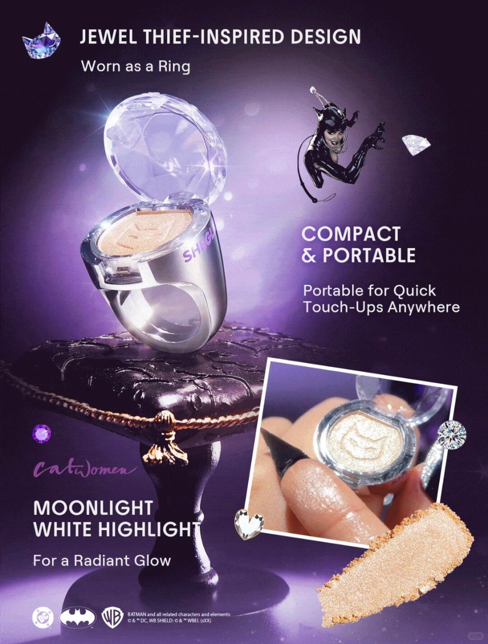 Sheglam的产品设计更加有趣。手链唇膏、项链香膏、戒指高光,产品形态直接向珠宝靠拢。