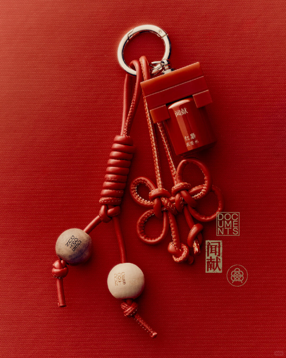 国货美妆在这场潮流中找到了自己的叙事语言——东方文化符号。闻献的Q香绳结包挂,5ml淡香精配上一枚精巧的中国结,金属挂扣、皮绳、木珠搭在一起,手工的温度和线条的利落居然同时在线。系在包上、挂裤链或者串钥匙,随手悬在车里当个香氛装置也不违和,就这样把随身的香气做成了一件可以戴着走的装饰品。